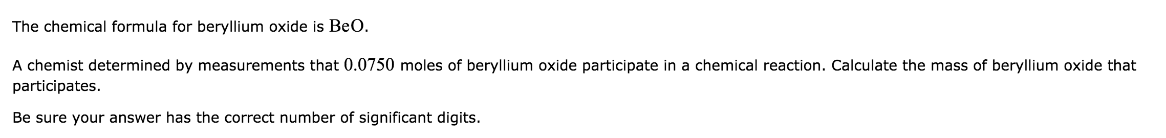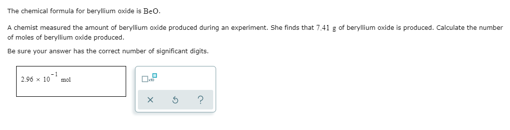 Solved The Chemical Formula For Beryllium Oxide Is Beo A Chegg Com